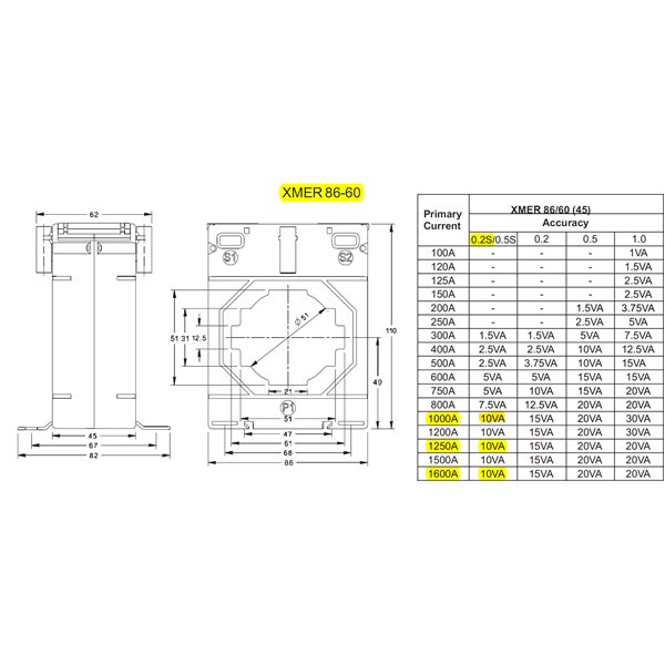 Reference : XMER 86/60(45)-1000/5A CL-0.2S