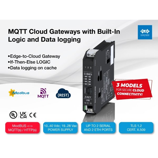 The R-KEY-LT-C, Z-KEY-C, and Z-KEY-2ETH-C are industrial ModBUS-to-Cloud gateways designed to securely connect automation systems, devices, and networks with IT and IoT platforms. They collect data from ModBUS RTU/ASCII/TCP-IP buses and transmit it to major industrial cloud services using MQTT(s) or HTTP(s) protocols, with TLS 1.2 encryption and X.509 certificates ensuring maximum data security. The three models differ in the number of serial and Ethernet ports, yet share the same reliability, robustness, and operational flexibility.