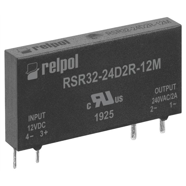 Single-phase sold state relays, miniature RSR32-24D2-5M, zero-crossing or random-on switching, load voltage 240 V AC, control input DC 5 V, rated load AC1 - 2A/240 V.