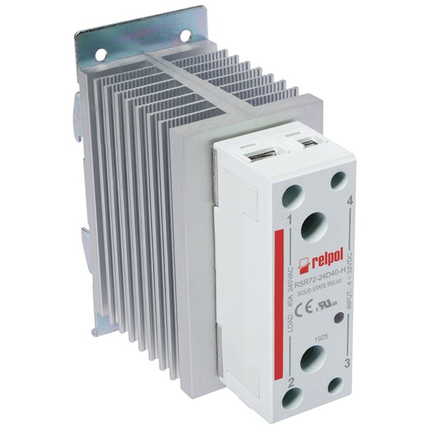 Single-phase sold state relays, industrial RSR72-60D20-RH, zero-crossing switching, load voltage 600 V AC, control input 4…32 V DC. Rated laod AC1 -20/600 V AC. Integrated with heatsink.