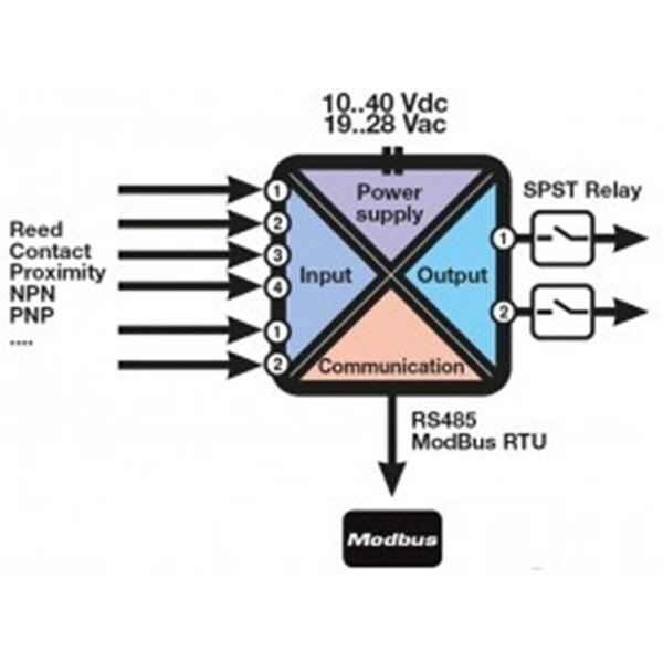 5 x entrées digitalees / 2 x sorties digitalees module / RS485 ModBUS RTU , montage rail din , série Z-PC Line - digitale I/O's
