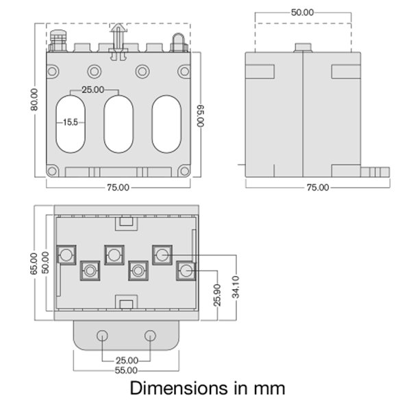 Le TAS240 est un transfo d’intensité d’une largeur de 75 mm