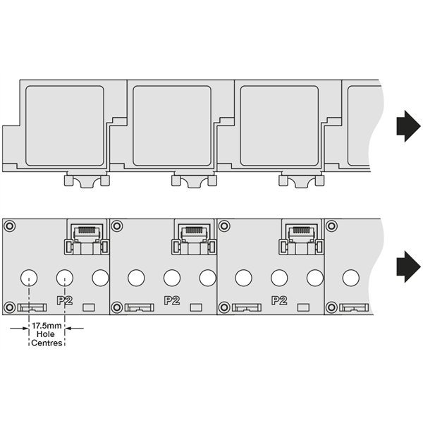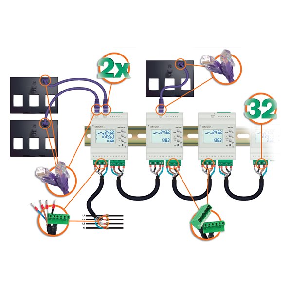Il est conçu pour être monté directement sous les disjoncteurs modulaires (MCB) avec un entraxe de 17,5 mm entre les ouvertures. Grâce au système easywire®, le temps d’installation peut être réduit jusqu’à 90 % par rapport à une installation traditionnelle avec transformateurs de courant séparés.