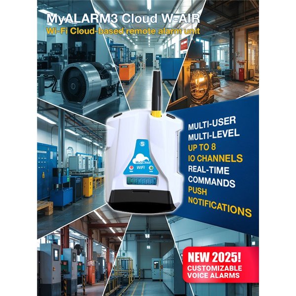 Le MyALARM3 Cloud W-AIR est une solution compacte et polyvalente tout-en-un pour la surveillance et le contrôle à distance d’installations, de machines et de sites non surveillés. Grâce à la connectivité Wi-Fi intégrée, il n’est pas nécessaire d’utiliser une carte SIM, ce qui en fait une solution industrielle plus stable et économique. Avec une configuration simple via application ou navigateur web, et des notifications en temps réel, cet appareil intelligent offre un contrôle total où que vous soyez.
