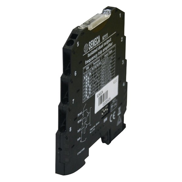 K111D est un diviseur de fréquence (capable de gérer jusqu'à 256 impulsions à l'entrée) avec la fonction d'un répéteur de signal d'entrée. Il dispose d'un bloc d'alimentation isolé et stabilisé et d'une LED frontale indiquant l'état de l'alimentation et des sorties. L'isolation galvanique des signaux provenant de capteurs On / Off est de 1500 V. Le module accepte différents types de signaux d'entrée, avec une fréquence allant jusqu'à 20 kHz, sélectionnable pour les capteurs à 2/3 fils: NPN 12 / 24V, PNP, PNP 12 / 24V, impulsion photoélectrique, contact CEI 1131-1, Namur, Reed.
