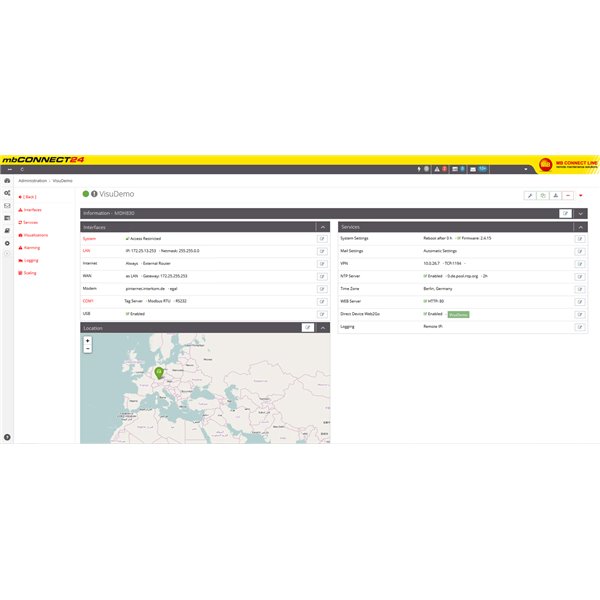 Le mbNET® de base est utilisé pour la maintenance à distance des machines ou installations via Ethernet ou réseau GSM.