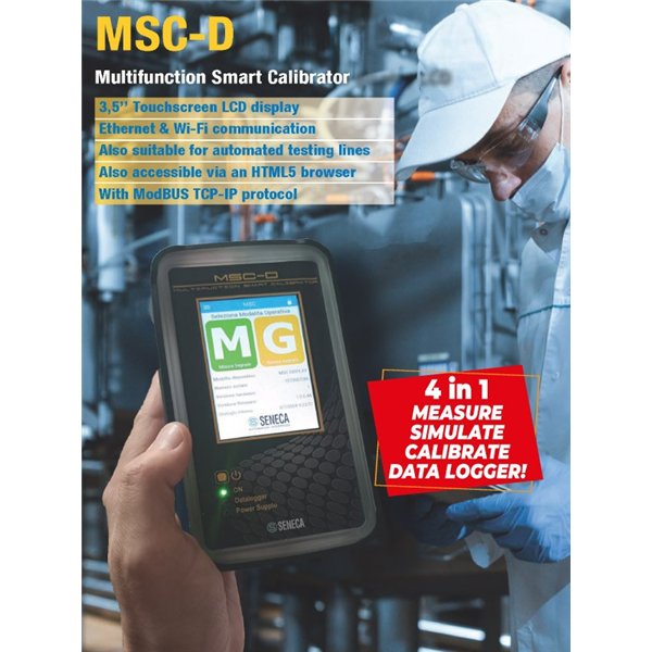 Le MSC-D (Multifunction Smart Calibrator) est un calibrateur multifonction conçu pour la maintenance et le test de capteurs et d'instruments de mesure de process. Avec une précision supérieure à 0,05 % sur tous les types d’entrées et de sorties, il garantit des mesures fiables ainsi que la génération de signaux analogiques, numériques, de capteurs de température et de cellules de charge.