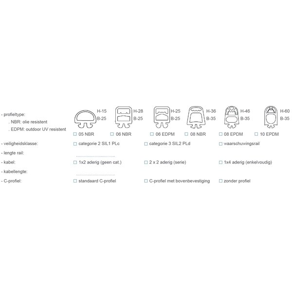 en EPDM résistant à l’ozone. Les rails sont fabriqués 100 % sur mesure en longueurs