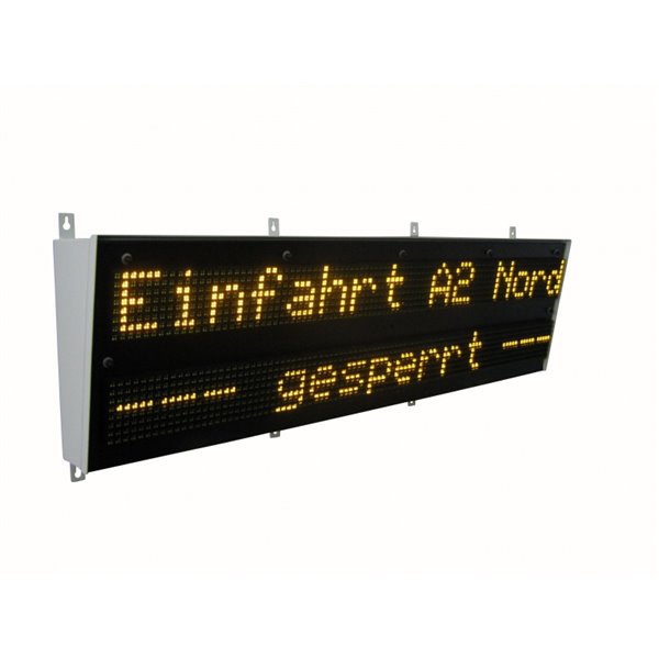 Nos écrans de plein air alphanumériques sont adaptés pour une installation extérieure. Les applications typiques sont des indicateurs pour les indicateurs de processus et les états, les valeurs spécifiques au processus, procédés de fabrication, l'erreur et la perturbation messages, gare et Etats de la ligne et des systèmes camion d'appel. La hauteur des caractères peut être dans les 60 à 960 mm, avec la couleur des chiffres rouge ou orange. Le nombre de lignes est arbitraire, étant de 40 points par ligne sont possibles.