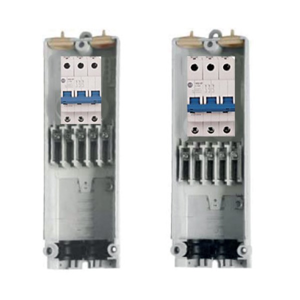 - 4 schuifklemmen voor aansluiting van 2 kabels 4x25mm² of 3 kabels 4x16mm²