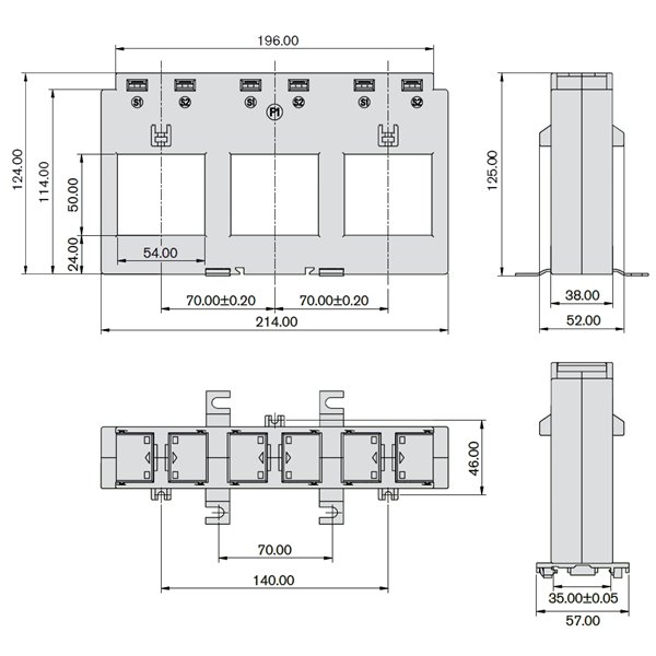 De TAS250 is een 214 mm brede driefasige stroomtransformator