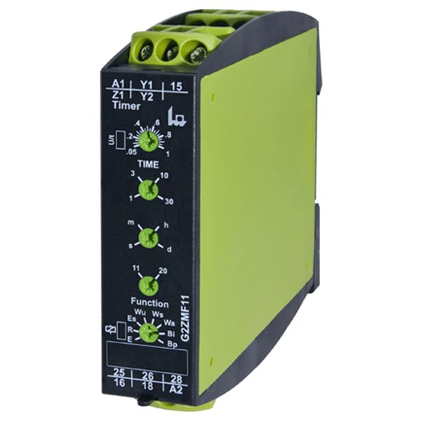 . tijdsinstelling: op het apparaat of via buiten potentiometer 1MOhm