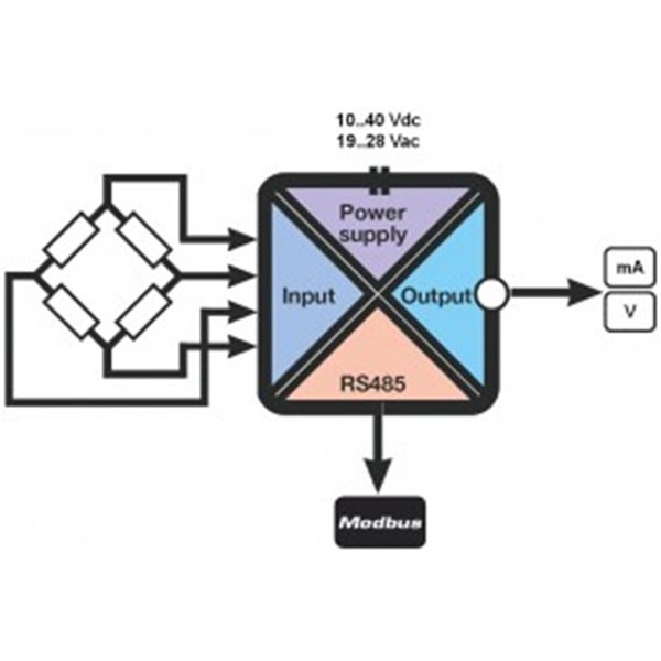 . ingang: 1 x analoog: load cel (strain gauge) 1..4/8 cellen