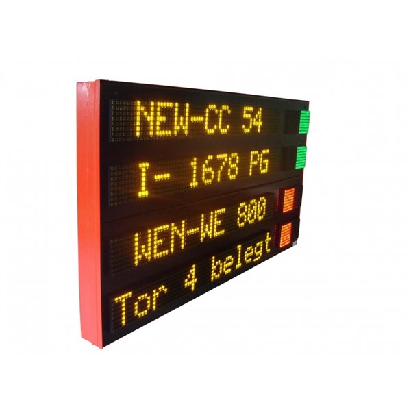 Onze alfanumerieke outdoor displays zijn geschikt voor buiten installatie en zijn volledig op maat te maken. Typische toepassingsgebieden zijn gewichtaanduidingen, productie meetgegevens, waarschuwingen, alarmen, toerenteller of veiligheidschermen (bijvoorbeeld dagen zonder ongevallen). De digit hoogte kan u kiezen tussen 60-960 mm. Het aantal lijnen is vrij te kiezen, per lijn kan u 40 karakters weergeven.Beschikbaar in rood of multicolor.